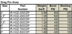 - Burst pressure up to 600 PSI / Working pressure 150 – 200 PSI